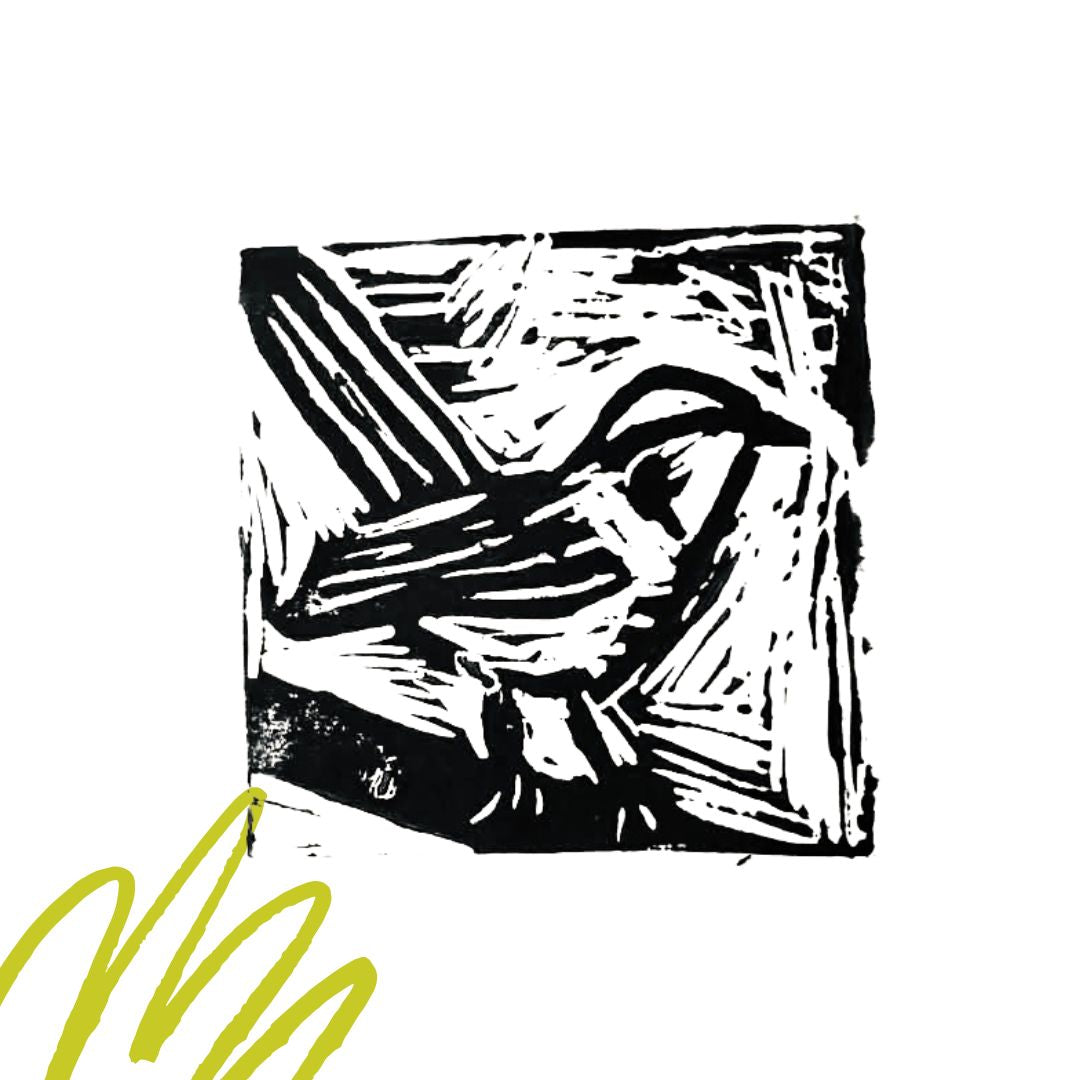 Week 8: Carve and print a ‘Lino Cut Birdie’ on last weeks paper.